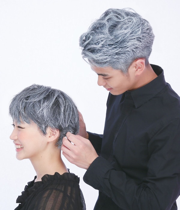 黒髪だけでなく白髪やカラーリングした髪にも自然に馴染み、あえての銀髪(シルバーカラー)が知的でクールな印象に!