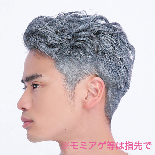 2整髪料のついていない、完全に乾いた髪に薄くなじませる。ヘアワックスやジェルをつけるように、根本からしっかり揉み込むと髪がキレイな銀色に!